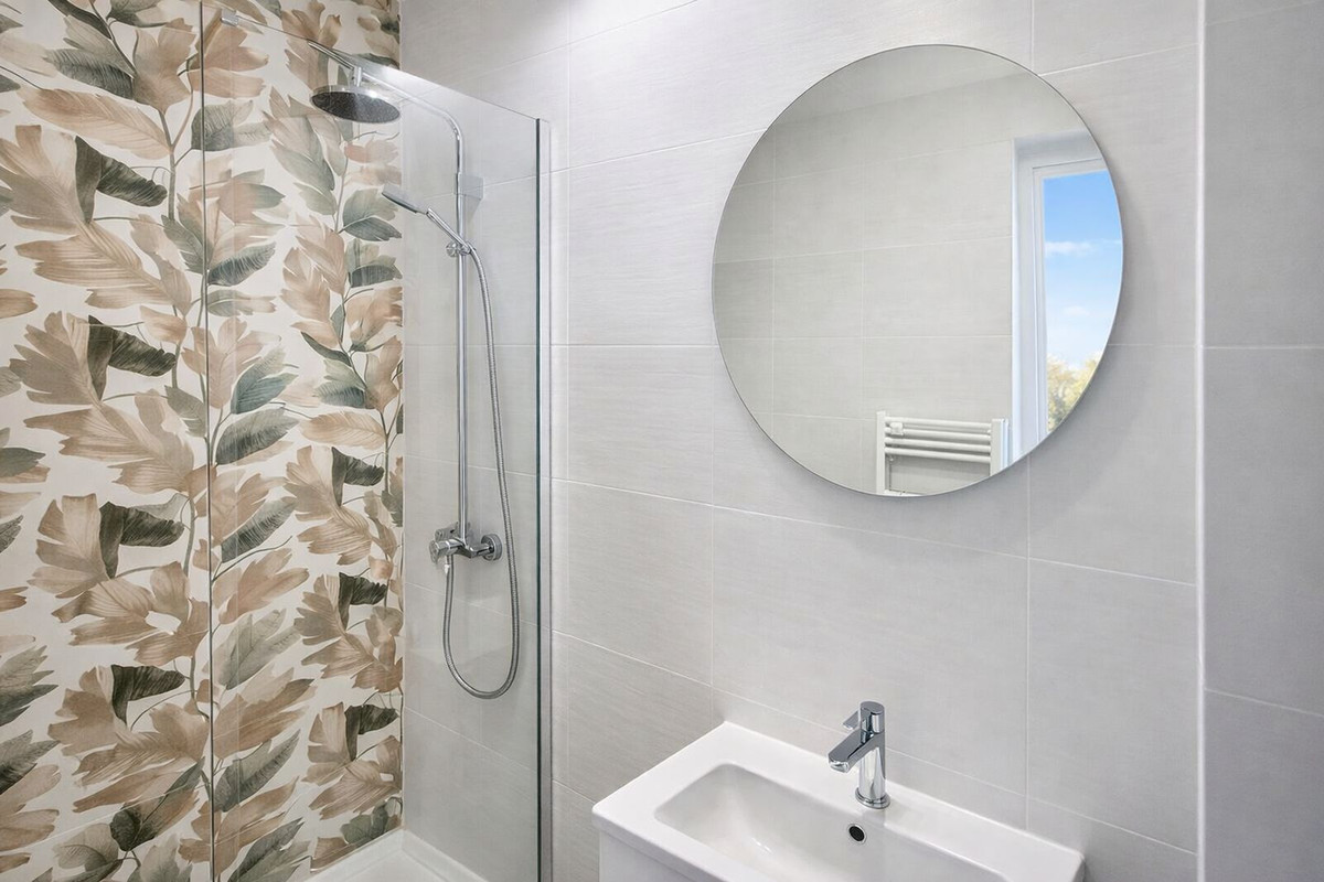The property has been completely refurbished with contemporary finishes, including new windows, modern flooring, a redesigned kitchen, and air conditioning, offering a bright, comfortable, and efficient living space. The open-plan kitchen connects seamlessly with the living room, creating the perfect environment for everyday living or entertaining guests.