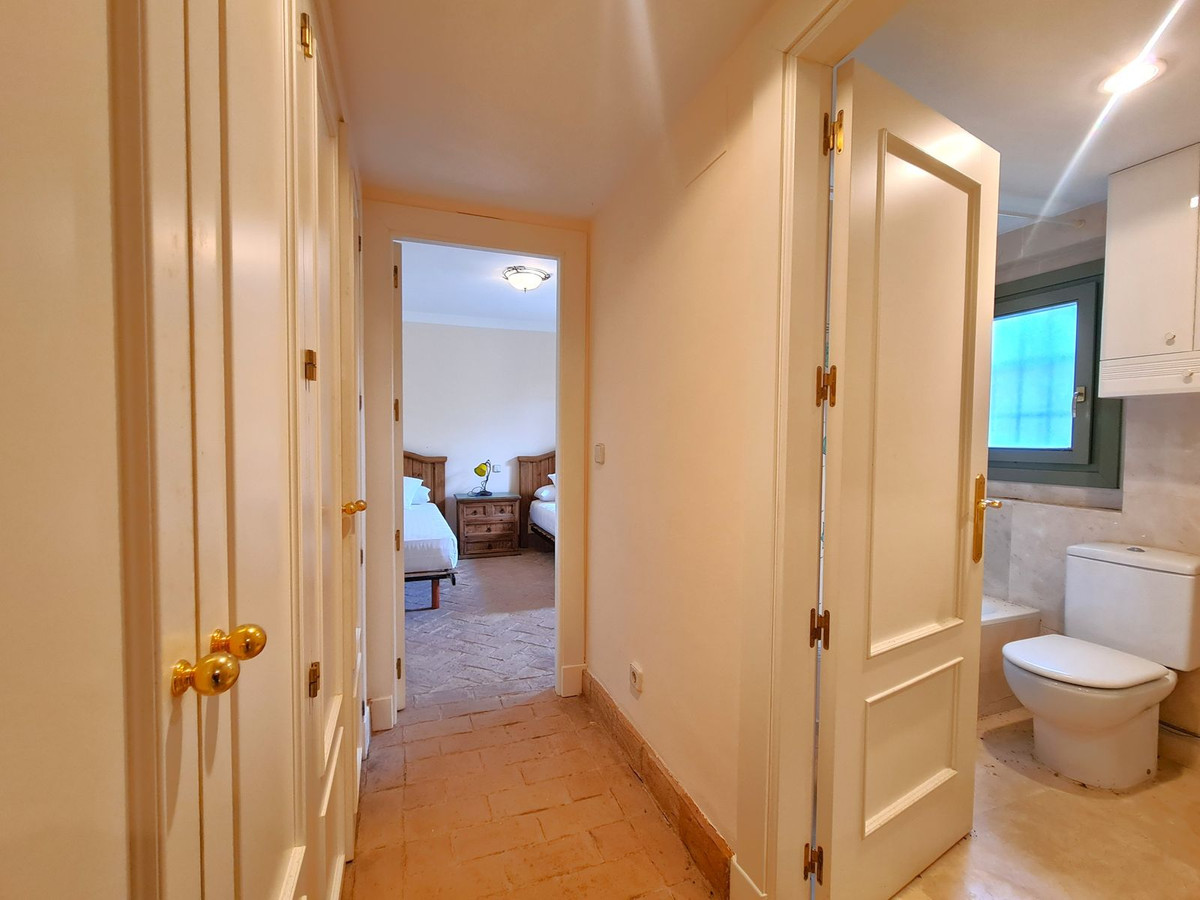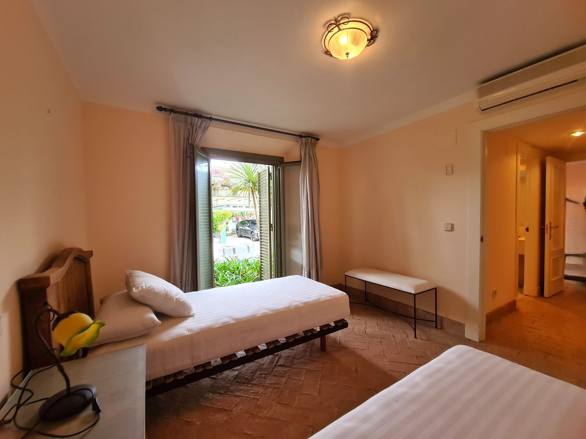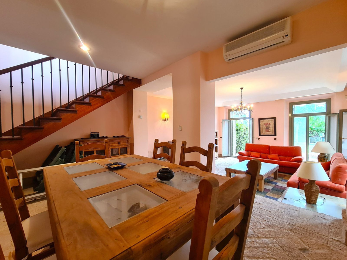 Located in one of Sotogrande's most exclusive residential areas, this property is just a 2-minute walk from the beach, enjoys direct access to the marina's berths, and is close to restaurants, beach bars, and shops. Its location makes it attractive to water sports enthusiasts, tennis and padel players, and golfers. Just 20 km from Gibraltar Airport and 95 km from Malaga Airport, it is ideal as both a permanent residence and a second home. The property faces southwest and is distributed over two floors. On the ground floor, there is a spacious entrance hall leading to the large living-dining room with a fireplace and access to the large private garden. There is also a spacious, fully equipped kitchen with access to a porch that connects to the private garden. On the ground floor is one of the property's three bedrooms. This spacious bedroom features a large built-in wardrobe and an en-suite bathroom. Upstairs, there are two more large bedrooms with ample built-in wardrobes and spacious en-suite bathrooms. One of these bedrooms has direct access to the solarium. The property includes a large private parking area at the entrance for two cars and access to beautifully maintained communal gardens and a swimming pool. A UNIQUE OPPORTUNITY TO ENJOY THE LUXURY OF LIVING BY THE SEA! WE HIGHLY RECOMMEND A VIEWING.