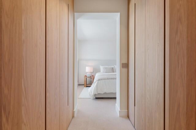 The open-plan layout connects the spacious living room, dining area, and designer kitchen, creating a fluid and inviting space ideal for both everyday living and entertaining. Neutral tones, high-quality finishes, and a timeless aesthetic elevate the overall sense of understated luxury.