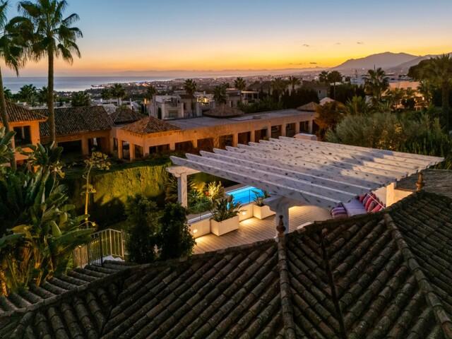 Nestled within the prestigious gated community of Sierra Blanca, this elegant Mediterranean-style villa offers a rare blend of timeless charm, privacy, and modern comfort in one of the most sought-after areas of Marbella Golden Mile. Set on a generous 1,148 m² plot, this beautifully maintained residence features 284 m² of built space, all thoughtfully distributed across a single level with an additional panoramic solarium.