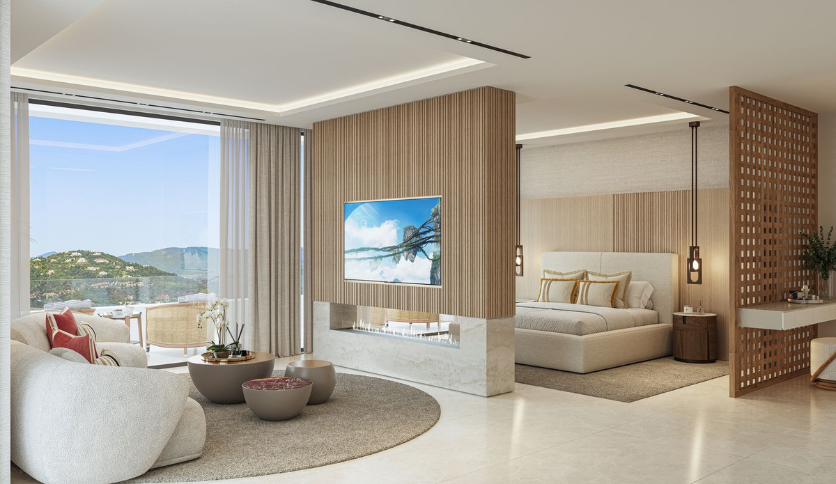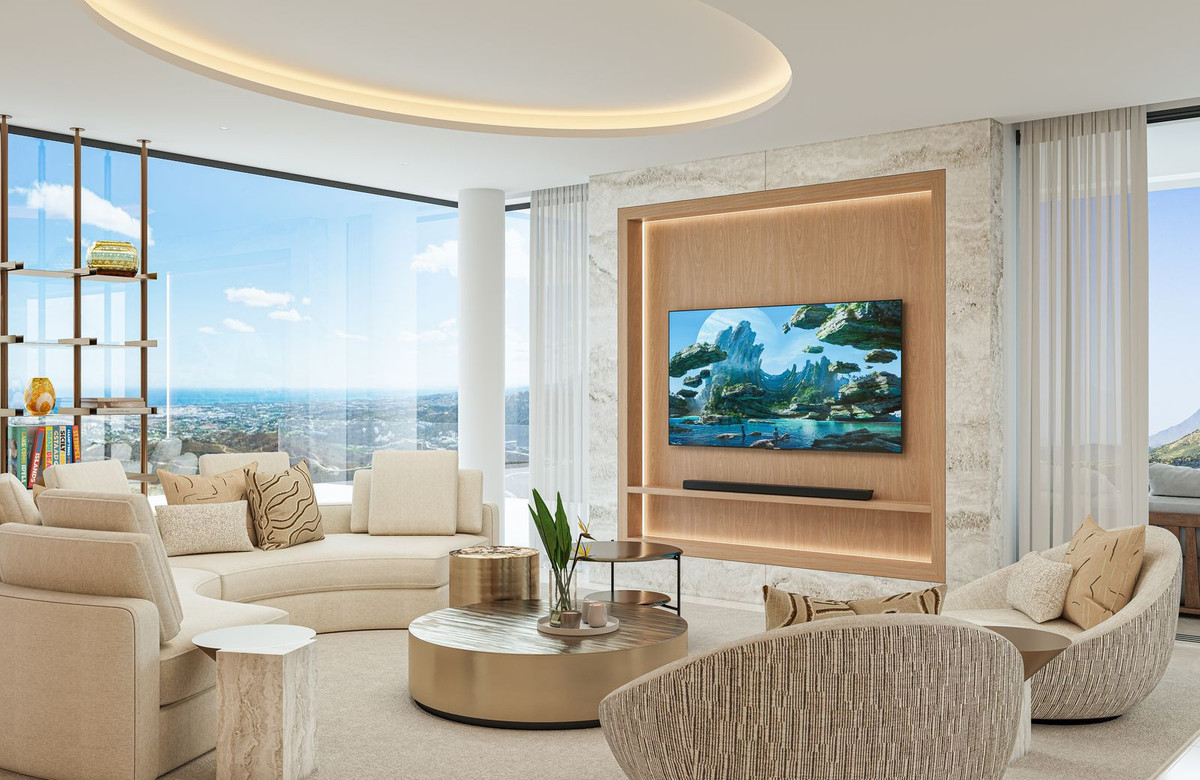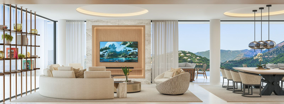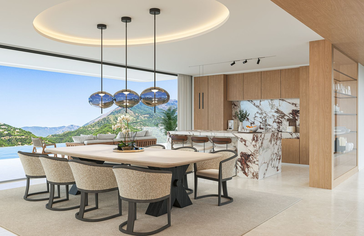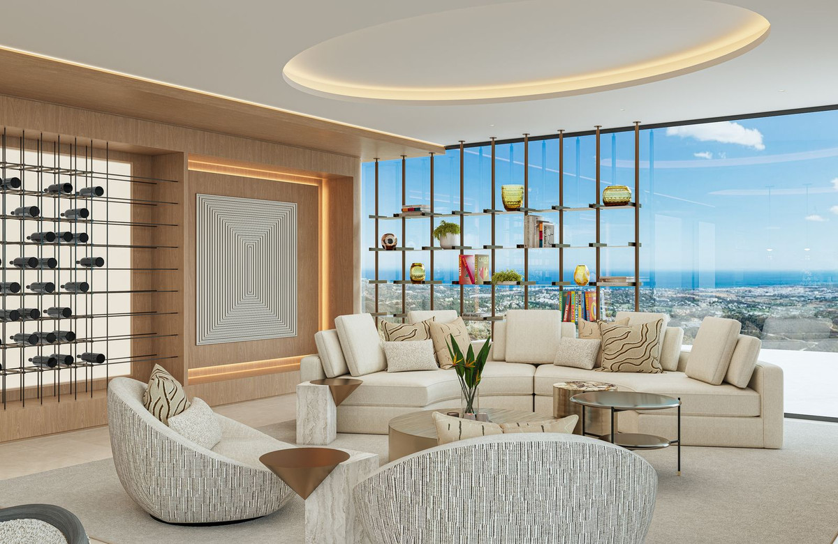 VILLA AURION enjoys an exceptional dual orientation to the west and south, offering a breathtaking panorama of both mountain and sea. From its elevated position, the villa captures sweeping views across the surrounding hills and the dramatic Sierra Bermeja mountain range, while overlooking the renowned La Zagaleta Country Club estate.